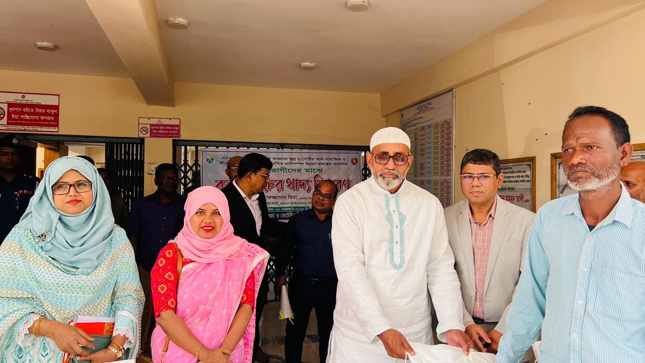 সমতল ভূমিতে বসবাসরত ক্ষুদ্র নৃ-গোষ্ঠিদের মাঝে গবাদিপশুর খাদ্য বিতরণ